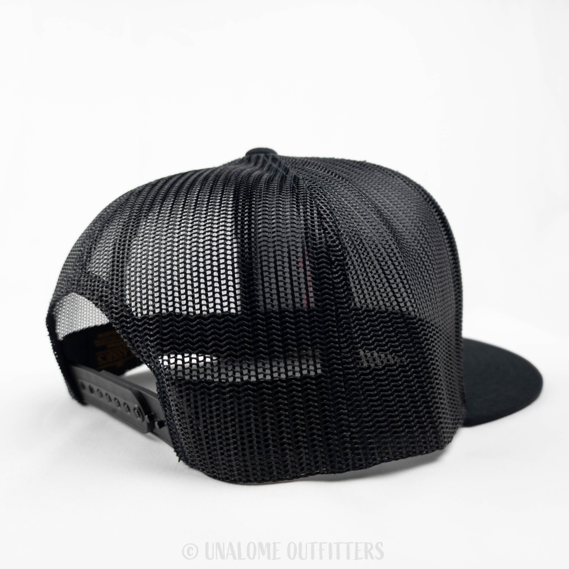 I recently collaborated with an embroiderer to produce this 3D Puff Unalome design, and we applied it to four popular cap styles. The caps featured in this production run include the Yupoong Flat Bill Snapback, Yupoong Dad Cap, Yupoong Flat Bill Trucker Hat, and Richardson 112. Each of these black hats showcases the intricate Unalome embroidery beautifully on the right panel. To add a touch of branding, we also included the Unalome Outfitters label sewn discreetly on the inside of each cap.